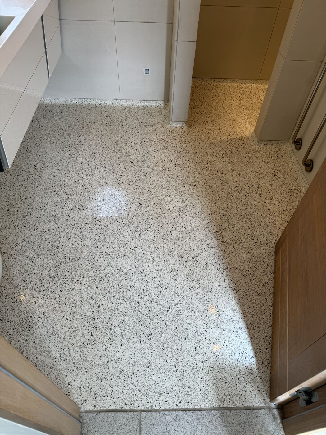Finpolering – Giver terrazzoen sin karakteristiske glans og fremhæver stenenes farvespil.