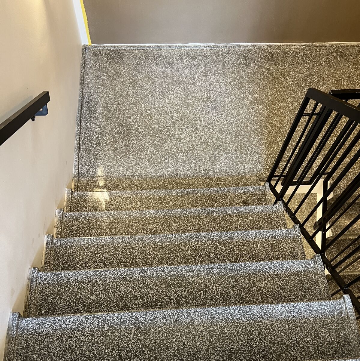 Hos Terrazzo By Fitch arbejder vi med professionel renovering af terrazzo trapper og opgange. med skånsom slibning og restaurering genskaber vi terrazzoens naturlige udtryk, så trappen igen fremstår smuk og slidstærk.